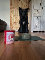 Tot nu toe heb ik de monoproteïnevariant “Gockels Duett” gevoerd en nu hebben we een nieuwe soort geprobeerd, “Gans im Glück”. Freyja vindt het erg lekker en verdraagt deze soort ook zonder problemen. Ik kan het natvoer van ANIfit van harte aanbevelen!